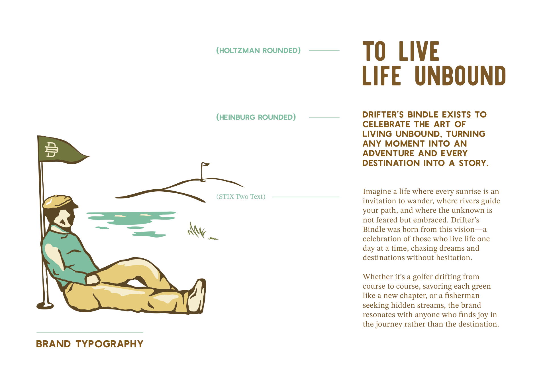 Drifter’s Bindle began with a simple yet pointed idea: a vagabond and their worldly possessions neatly wrapped on their back. The image characterizes the symbolism of the liberation that stems from a life lived outdoors. The brand essence was there from the start, just below the surface, rooted in a quiet curiosity and vintage minimalism, awaiting a clarity and a point of view that could carry beyond a single product or moment.